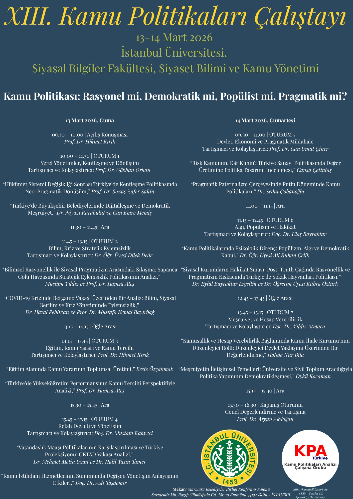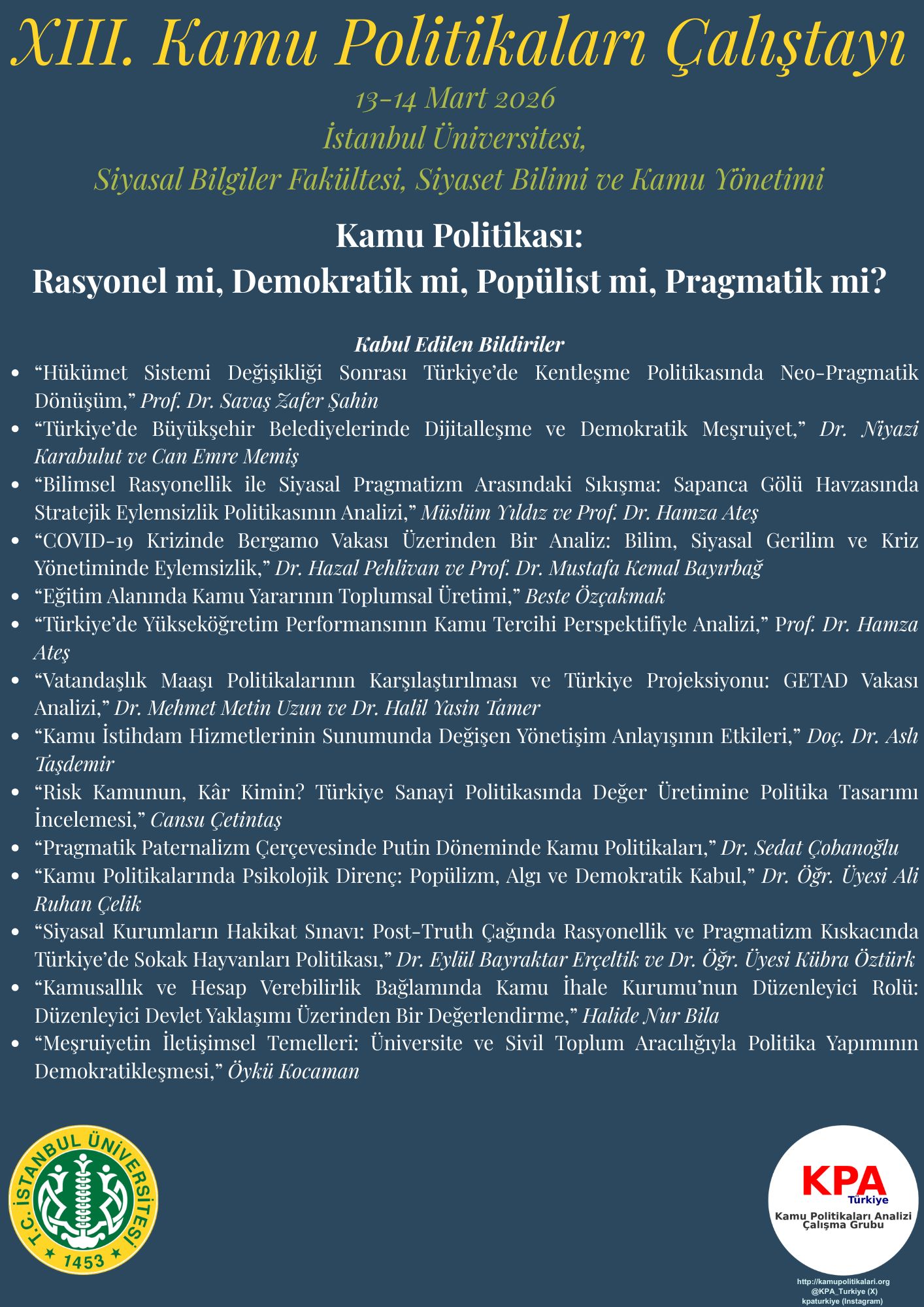 13. Kamu Politikaları Analizi Çalıştay Programımız yayımlanmıştır.